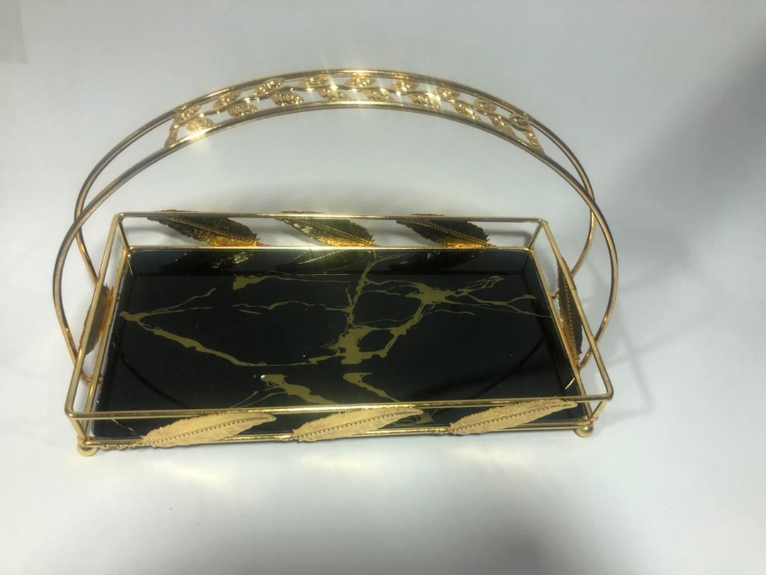صحن تقديم حلويات كروم ذهبي مع مسكة