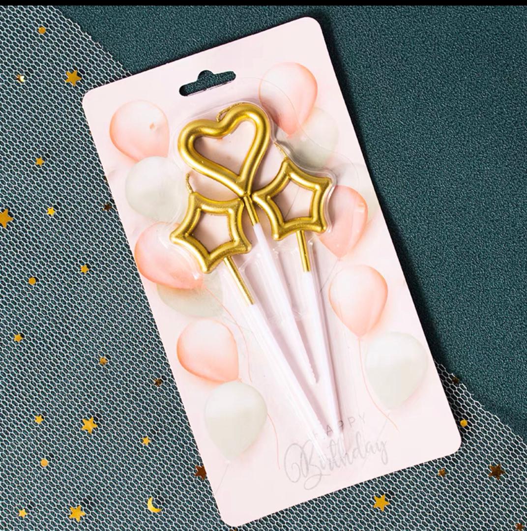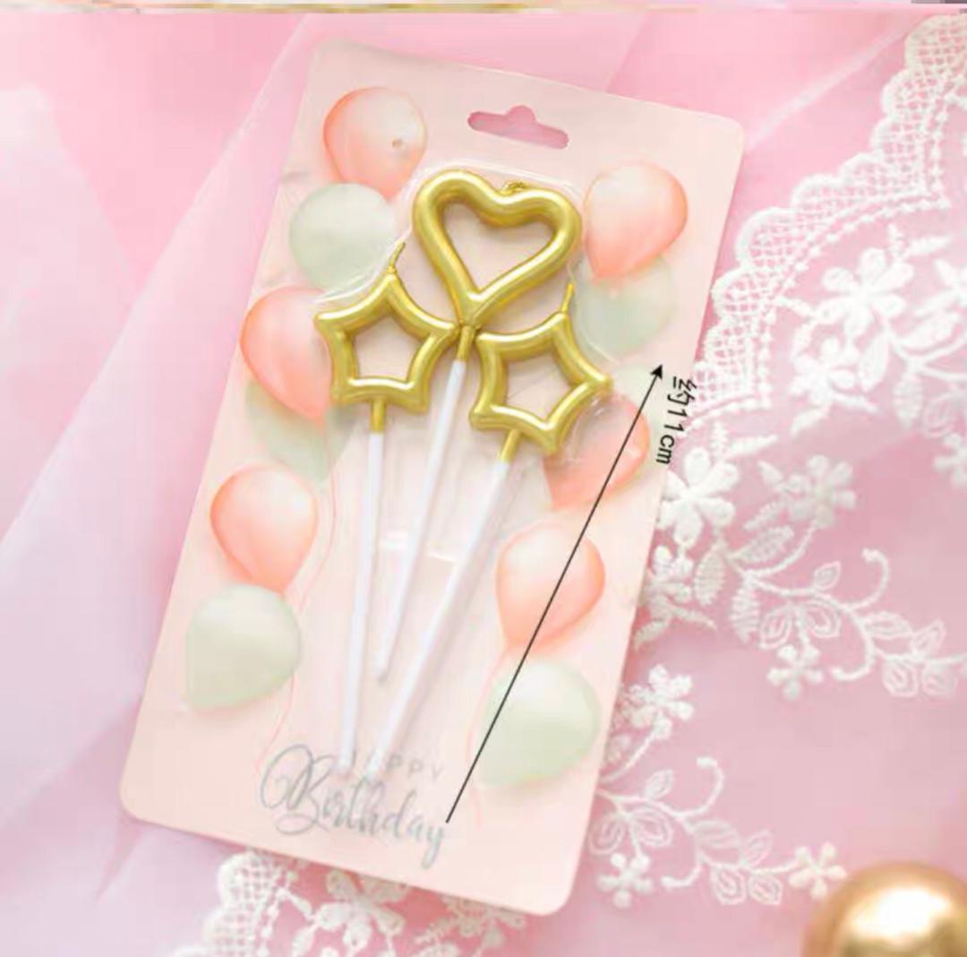 شمع اعياد ميلاد نجوم وقلب 3 قطع 7826-abs