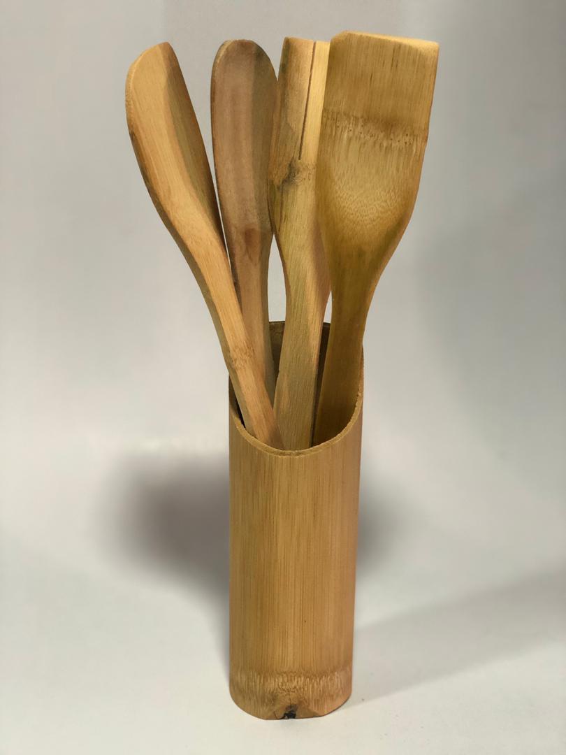 طقم ملاعق خشب مع ستاند *5